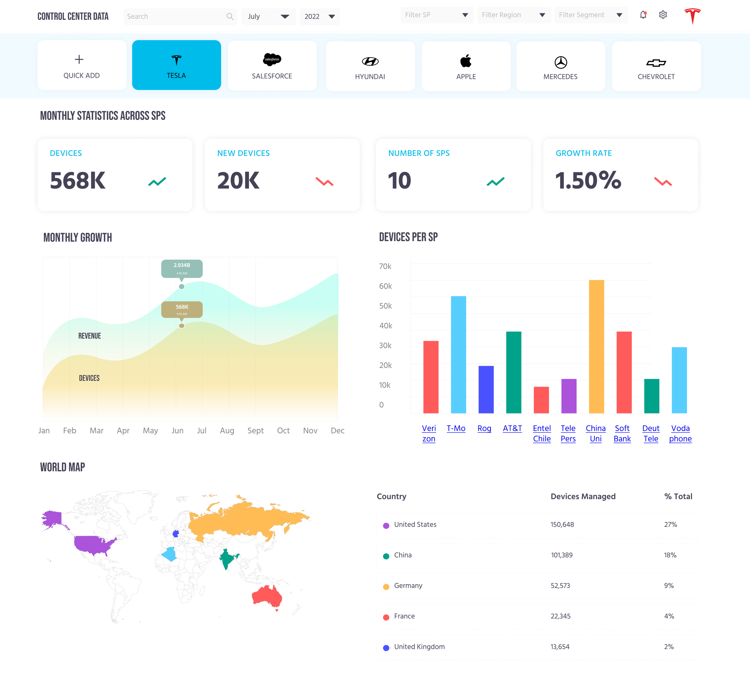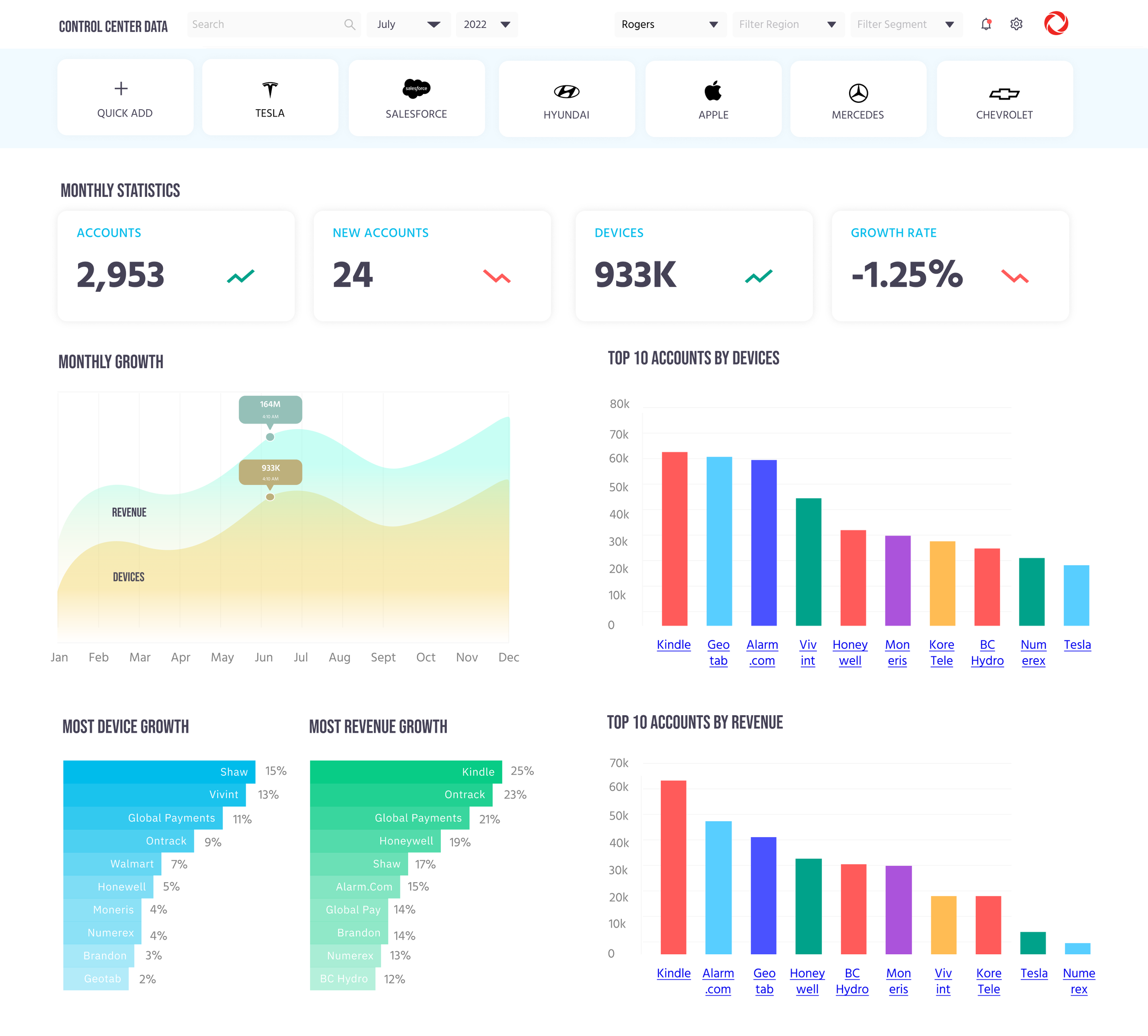 The Mobile IoT team now regularly uses it to identify growth opportunities for the multibillion-dollar Control Center Cloud SaaS platform (data shown at left is not accurate for security reasons).